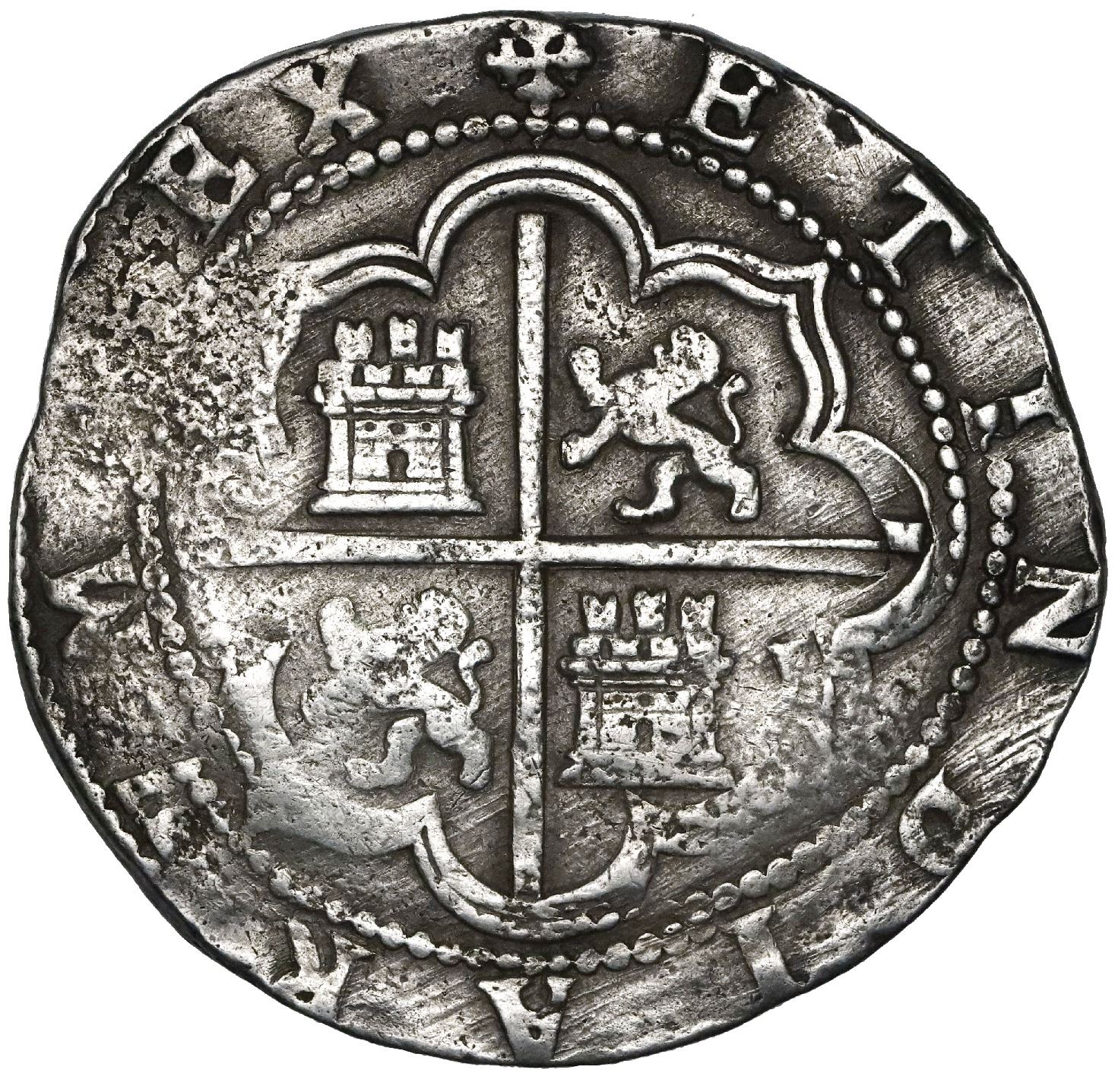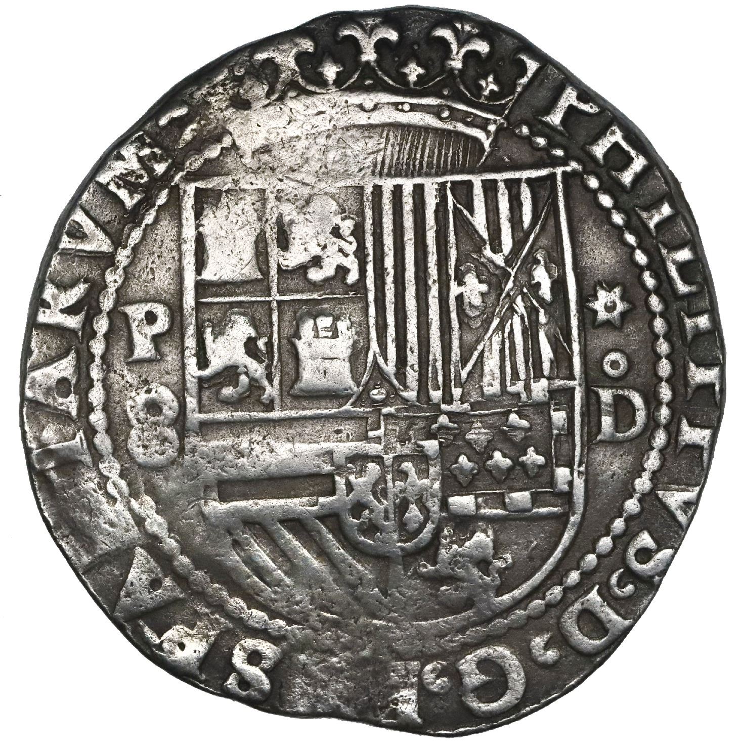 Lima, Peru, cob 8 reales, Philip II, assayer Diego de la Torre, P-8 to left, *-oD to right.