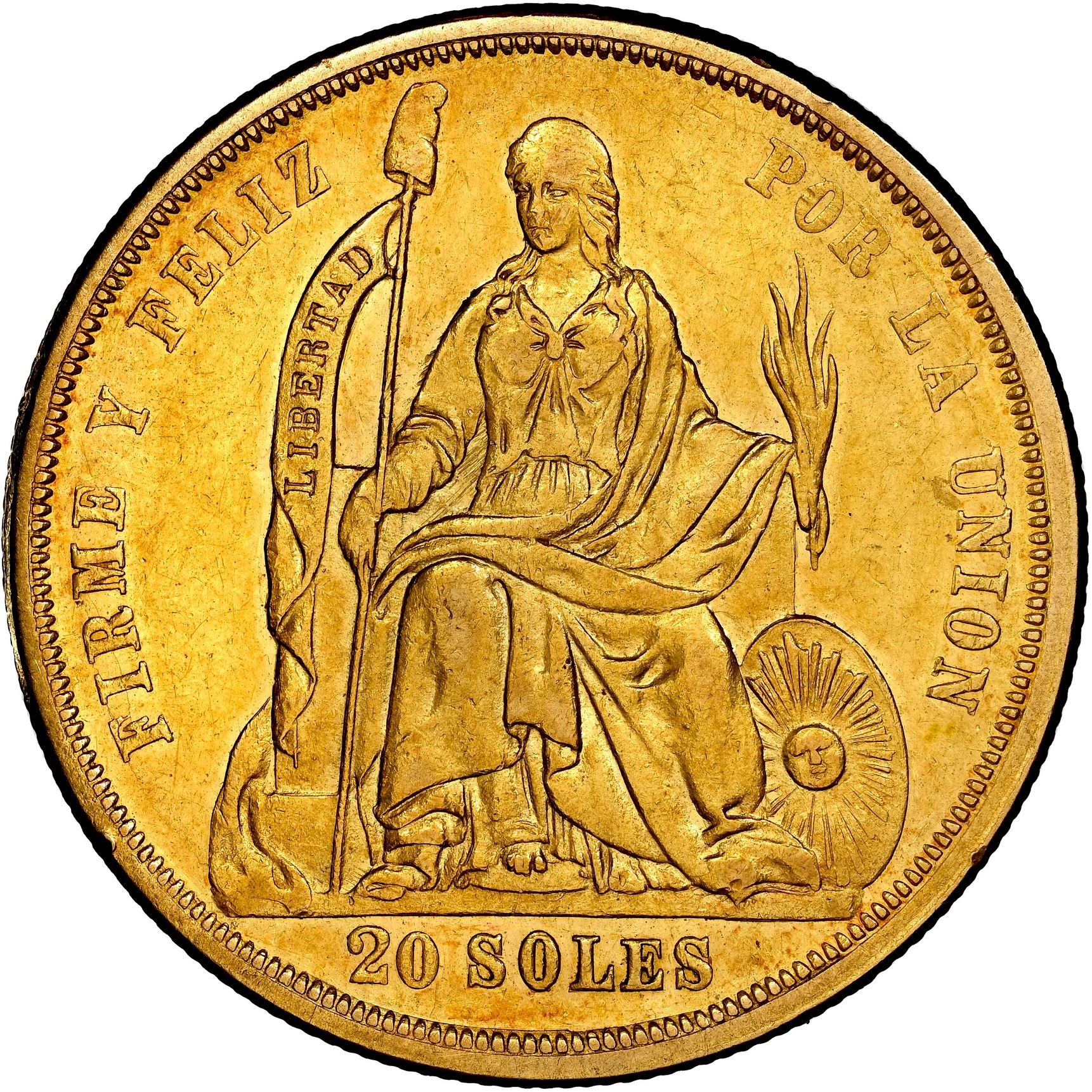 Lima, Peru, gold 20 soles, 1863 YB, NGC MS 61.