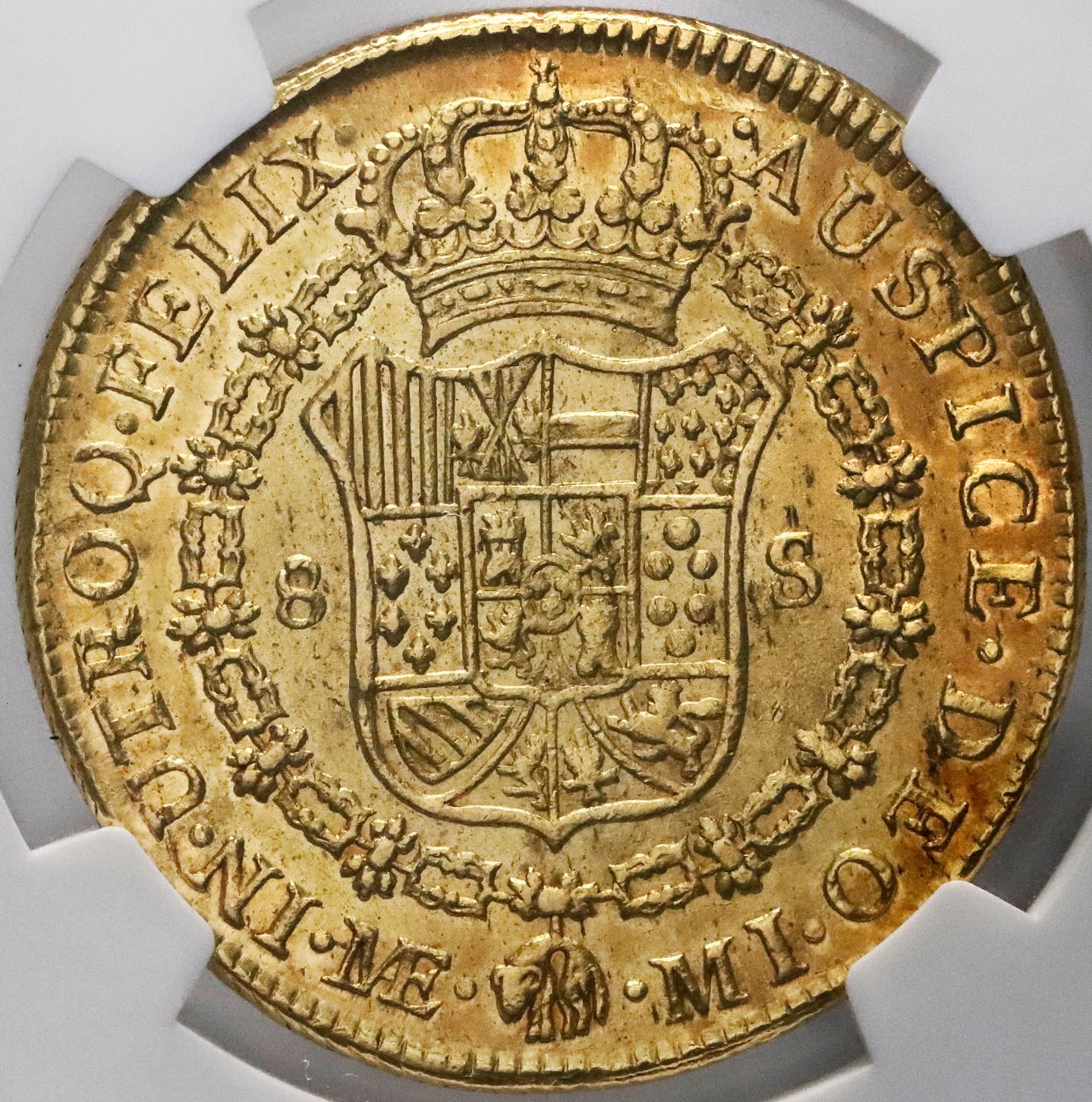 Lima, Peru, gold bust 8 escudos, Charles III, 1780MI, NGC AU details / cleaned.