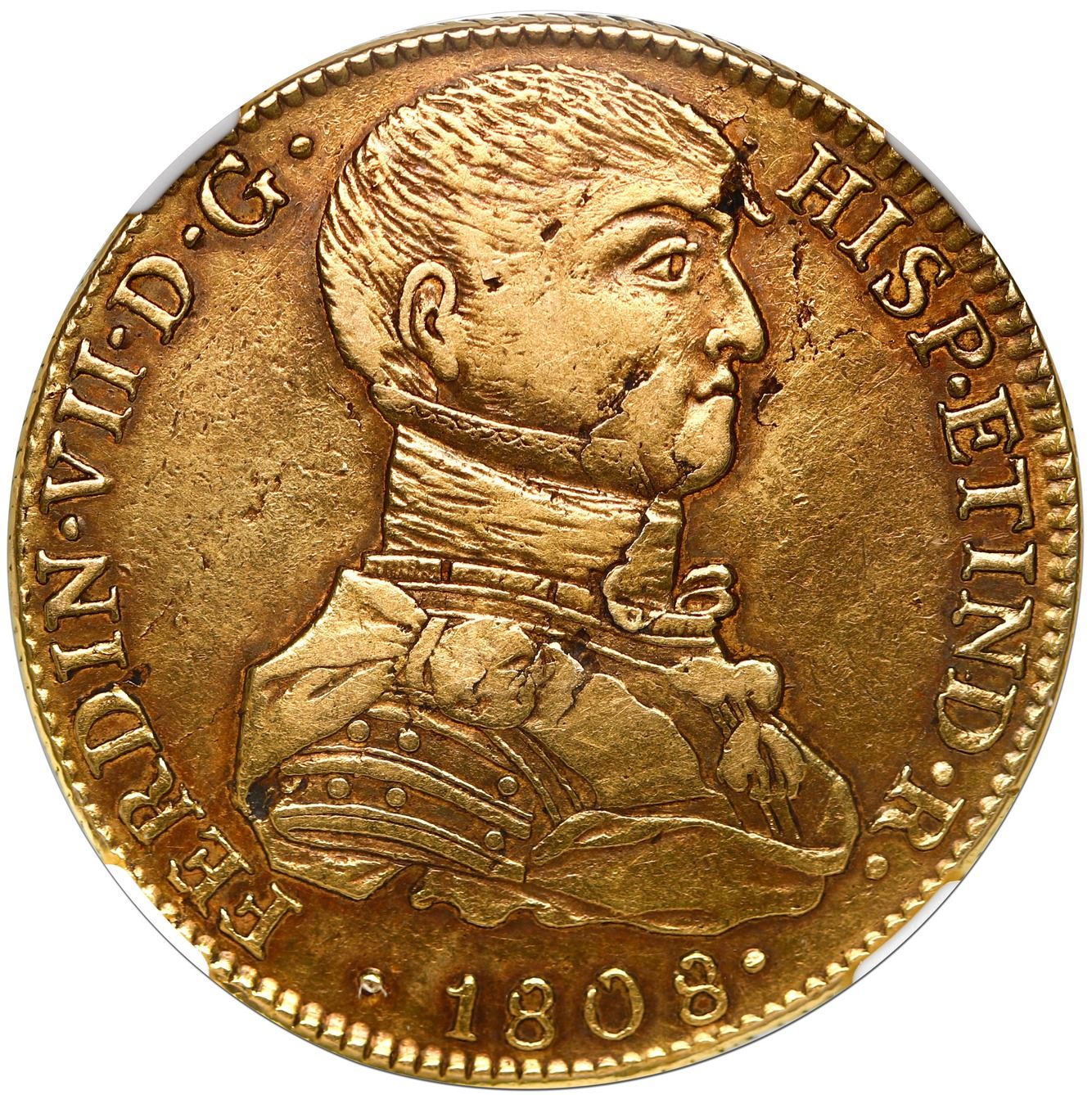 Lima, Peru, gold bust 8 escudos, Ferdinand VII transitional ("imaginary" bust), 1808 JP, NGC AU 53.