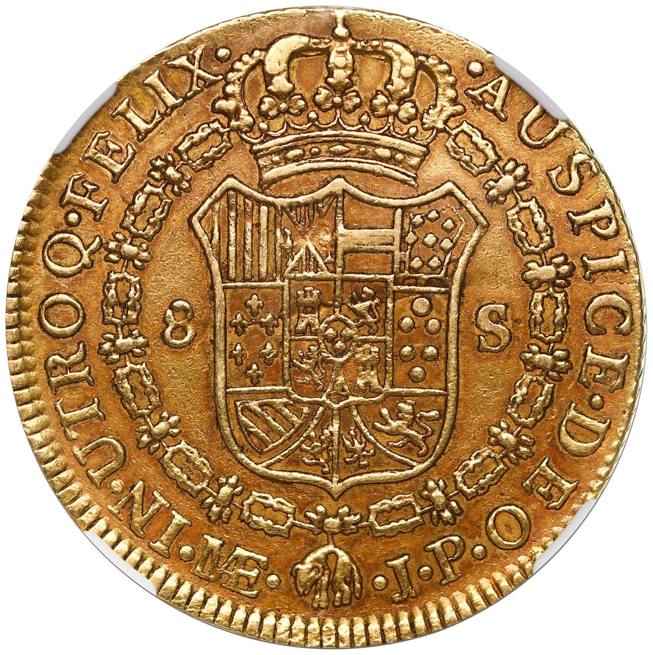 Lima, Peru, gold bust 8 escudos, Ferdinand VII transitional ( imaginary  bust), 1808 JP, NGC AU 53.