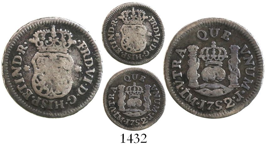 Lima, Peru, pillar 1/2 real, Ferdinand VI, 1752/1J, rare. KM-51. 1.58 grams. Richly toned AVF, center of shield weak but otherwise quite competent and desirable.