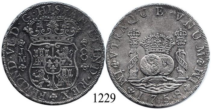 Lima, Peru, pillar 8 reales, Ferdinand VI, 1758JM.