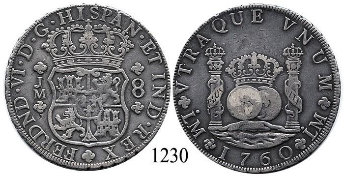 Lima, Peru, pillar 8 reales, Ferdinand VI, 1760JM.