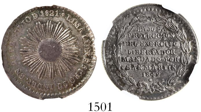 Lima, Peru, silver medal, 1849, San Martin, encapsulated NGC AU 55.