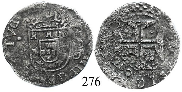 Lisbon, Portugal, 200 reis, John IV, with Brazilian 250-reis ("2S0") countermark (1663). 7.9 grams. Full cross with full countermark, nice shield side with lots of bold legend, toned and lightly corroded only here and there. Recovered from: Sacramento, sunk in 1668 off the Bay of All Saints, Bahia, Brazil.
