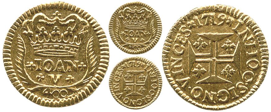 Lisbon, Portugal, 400 reis, Joao V, 1719. KM-201. 1.1 grams. Lustrous AU-, popular for jewelry.