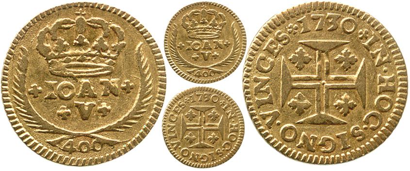 Lisbon, Portugal, 400 reis, Joao V, 1730. KM-201. 1.0 gram. Slightly low-relief XF, popular for jewelry.