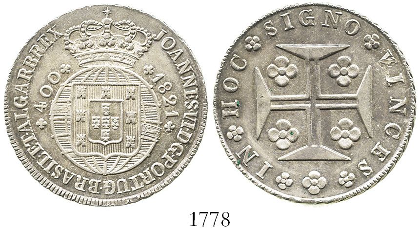 Lisbon, Portugal, 400 reis, Joao VI, 1821.