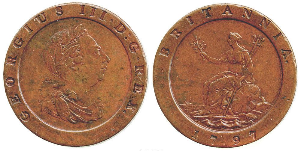 London, England (Soho mint), copper "cartwheel" twopence, George III, 1797.