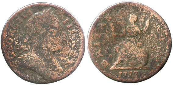 London, England, copper farthing, George III, 1773, very rare provenance.