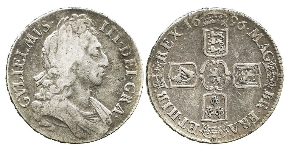 London, England, crown, William III, 1696. KM-486. 29.7 grams. Problem-free AVF with very light toning.
