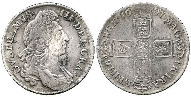 London, England, shilling, William III (first bust), 1697.