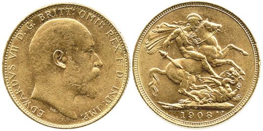 London, England, sovereign, Edward VII, 1908.