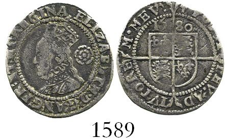 London, England, threepence, Elizabeth I, 1580. Sp-2573. 1.4 grams. Attractively toned VF, slightly off-center strike, all details full.