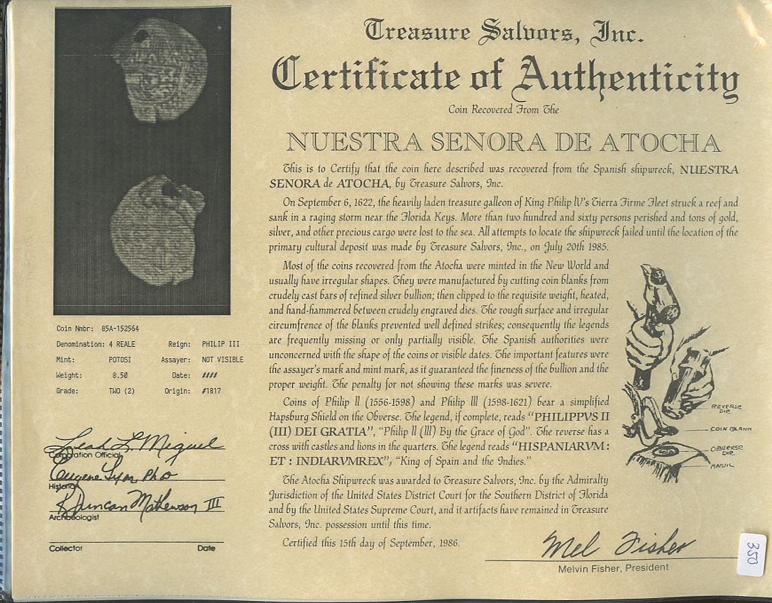 All items are genuine unless noted. Most shipwreck coins and artifacts come with a certificate of authenticity (please check the description for each item). By bidding in this auction you understand and agree to the Terms and Conditions posted here.