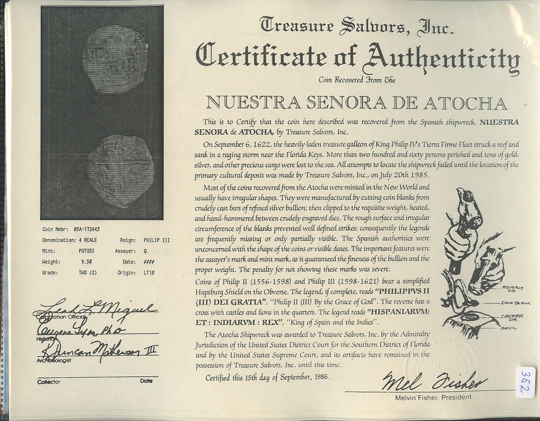 All items are genuine unless noted. Most shipwreck coins and artifacts come with a certificate of authenticity (please check the description for each item). By bidding in this auction you understand and agree to the Terms and Conditions posted here.