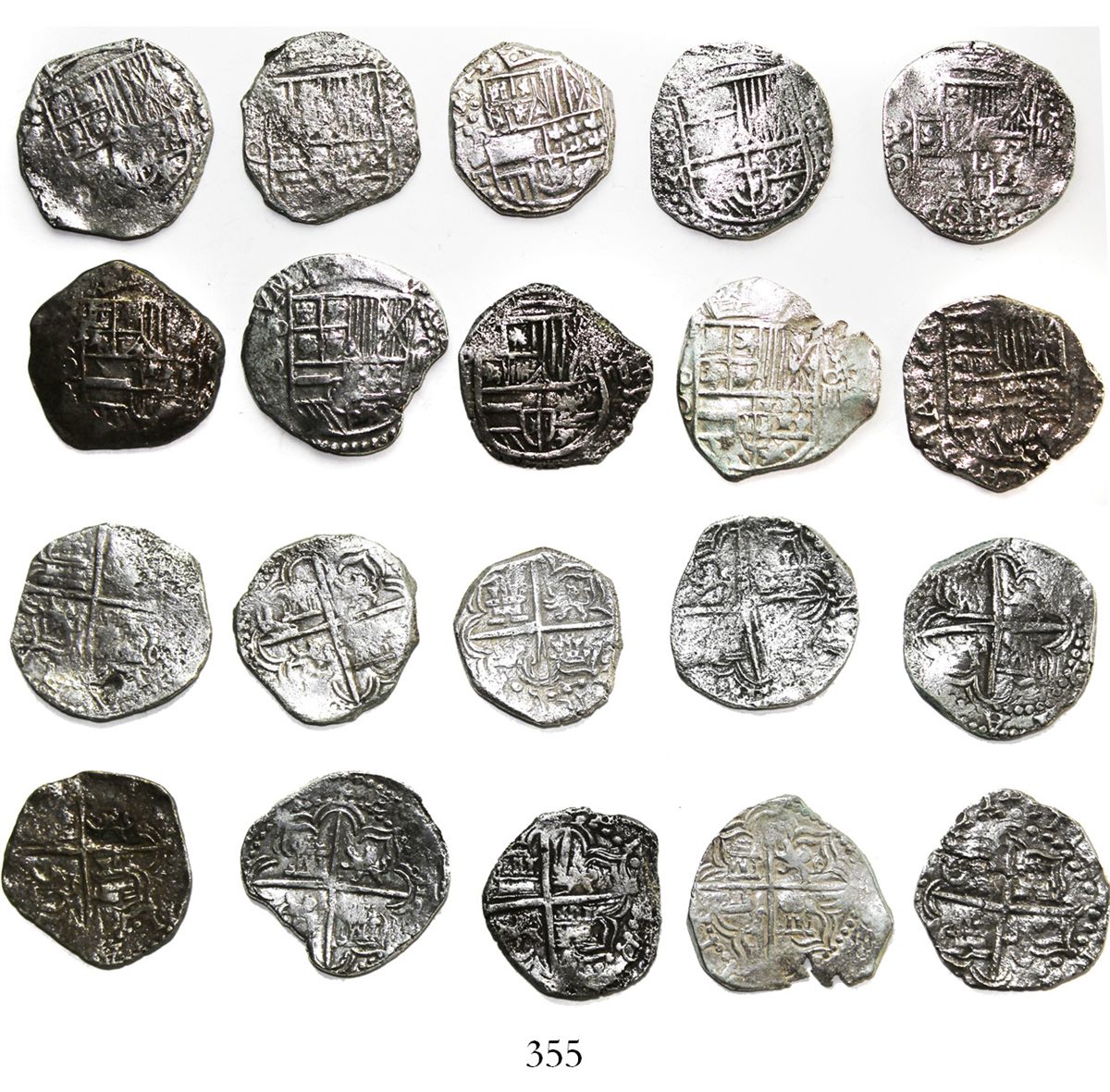 Lot of 10 Potosi, Bolivia, cob 4 reales, Philip III, various assayers (where visible), all Grade 1. KM-9. 127.67 grams total. Little or no corrosion, generally good shields and crosses. With Fisher certificates #170889, 175019, 175027, 177404, 183430, 186926, 187876, 205093, 217993 and 220353. Recovered from: Atocha, sunk in 1622 west of Key West, Florida