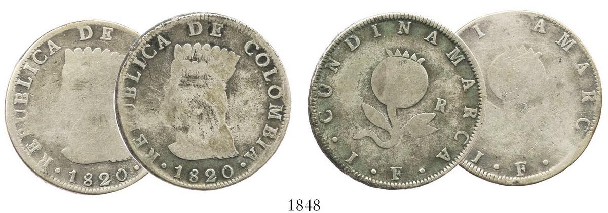 Lot of 2 Bogota, Colombia (Cundinamarca), 8R, 1820JF.