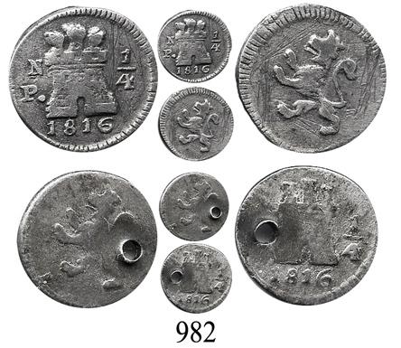 Lot of 2 Colombian ¼ reales, Ferdinand VII, 1816, Popayán and Bogotá.