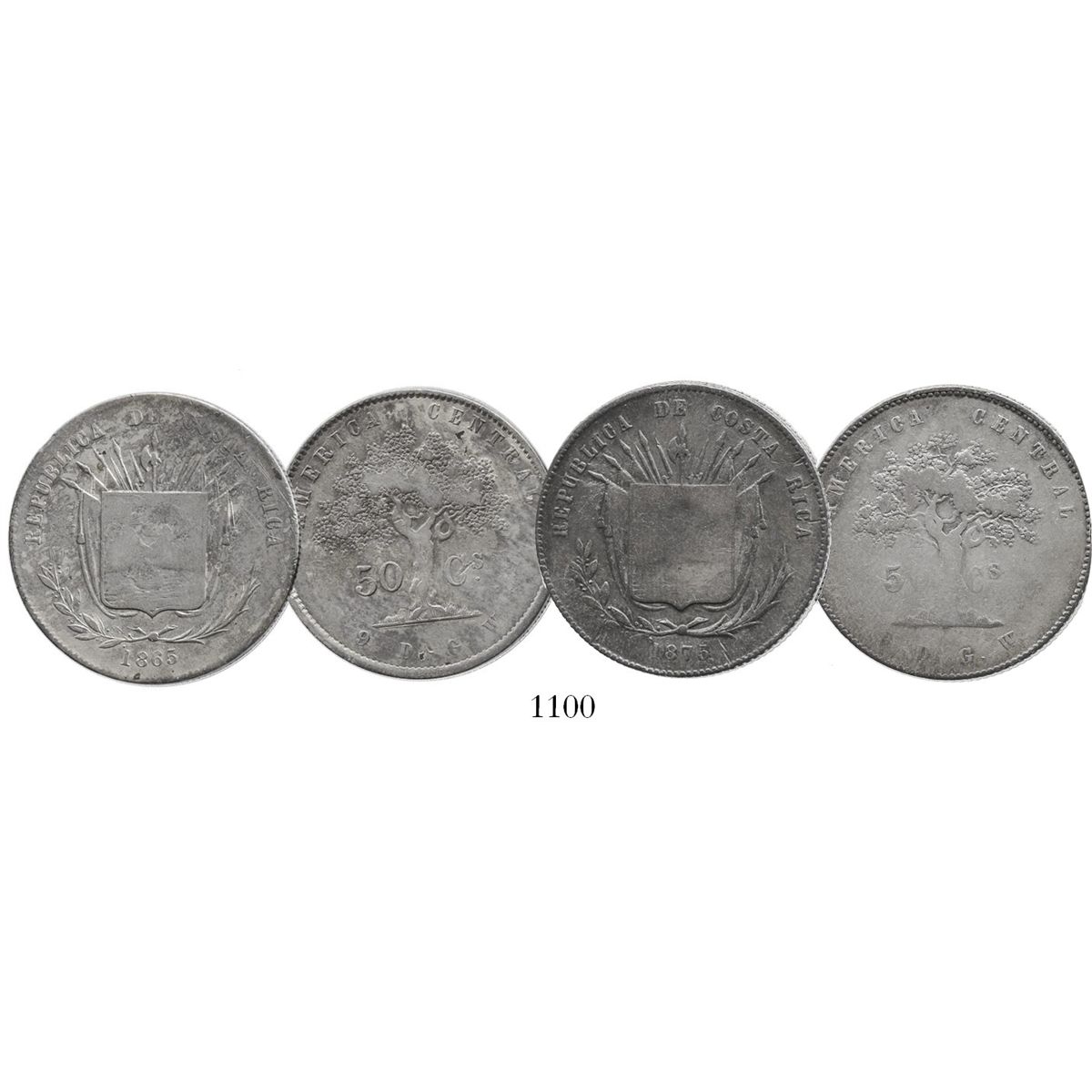 Lot of 2 Costa Rica 50 centavos (1865 and 1875). KM-112. 24.4 grams total. AVF on average, a few marks but nicely toned.