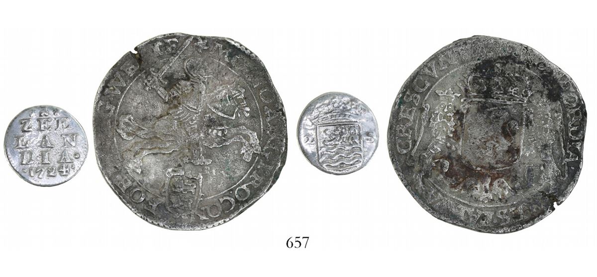 Lot of 2 Dutch silver coins from shipwrecks: DeLiefde (1711) and Slot ter Hooge (1724).