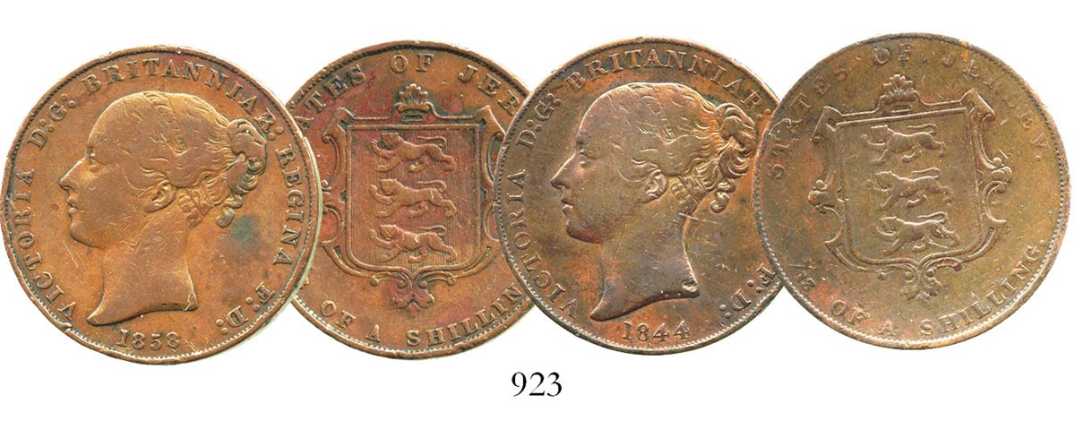 Lot of 2 Jersey (Channel Islands) copper 1/13 shillings, Victoria, dated 1844 and 1858. KM-3. 34.2 grams total. Both uncorroded VF, nice brown color, no corrosion or damage. Recovered from: Unidentified mid-1800s wreck in the English Channel