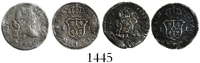 Lot of 2 Lima, Peru, bust 1/4R, Charles IV bust-type (1792-6).