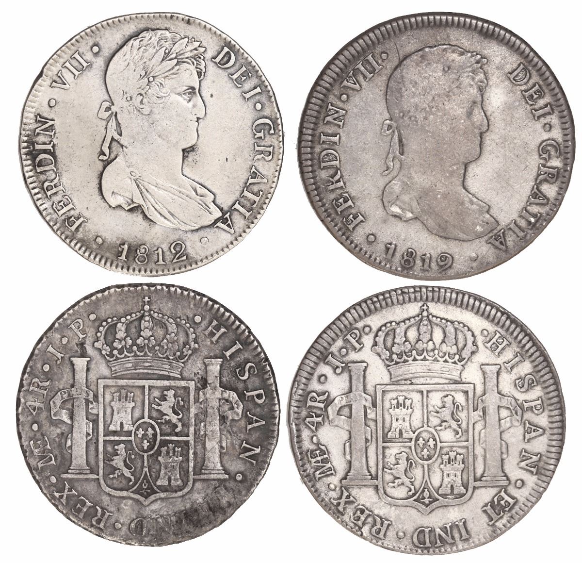 Lot of 2 Lima, Peru, bust 4 reales, Ferdinand VII: 1812JP and 1819JP.
