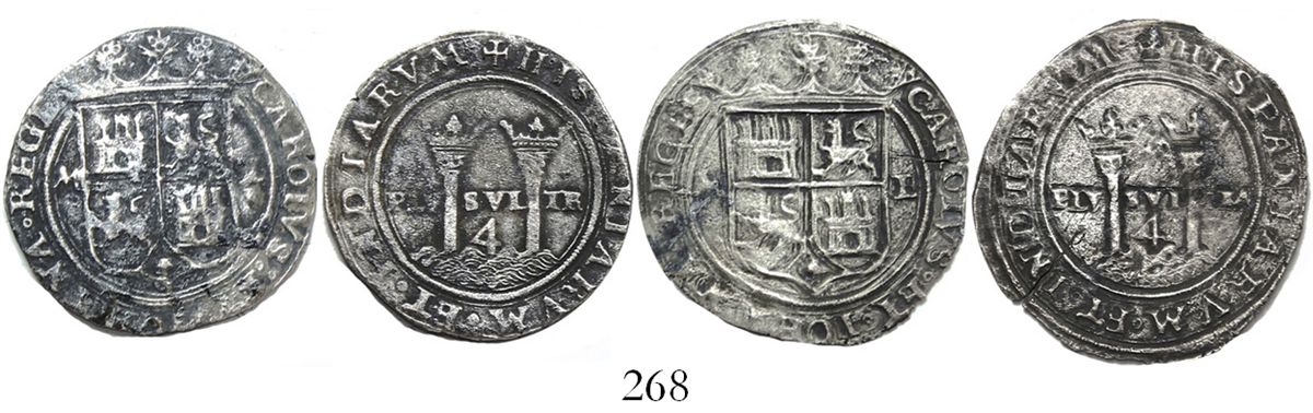 Lot of 2 Mexico City, Mexico, 4 reales, Charles-Joanna, "Late Series," assayer L to right, mintmark M to left. Nesmith 86 and 86 for type; S-M9. 19.93 grams total. Both well detailed, one quite broad but the other one normal, both with light surface corrosion and toning. Recovered from: Unidentified ca.-1554 wreck off Santo Domingo