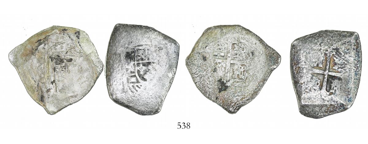 Lot of 2 Mexico City, Mexico, cob 8 reales, Philip V, assayers not visible. 42.04 grams. Mostly solid but corroded, clear shields and crosses, one with denomination .8. visible. With certificates. Recovered from: Spanish 1715 Fleet, east coast of Florida