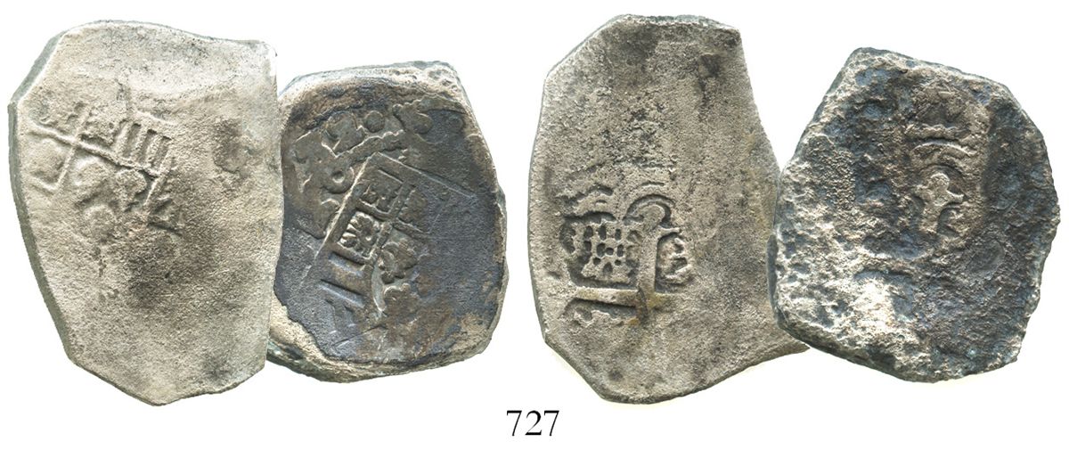 Lot of 2 Mexico City, Mexico, cob 8 reales, one dated 1732F and the other Philip V, assayer not visi