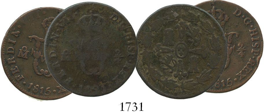 Lot of 2 Mexico City, Mexico, copper 2/4 senal (1/4 real), 1815 and 1821.