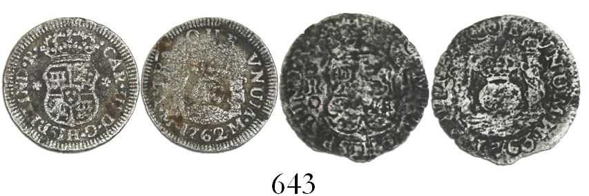 Lot of 2 Mexico City, Mexico, pillar 1/2R, Charles III, 1762/1M and 1763M.