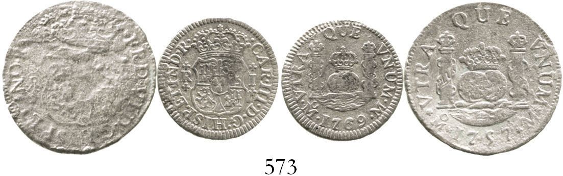 Lot of 2 Mexico City, Mexico, pillar minors: 2R, Ferdinand VI, 1757M; and 1R, Charles III, 1769M. 7