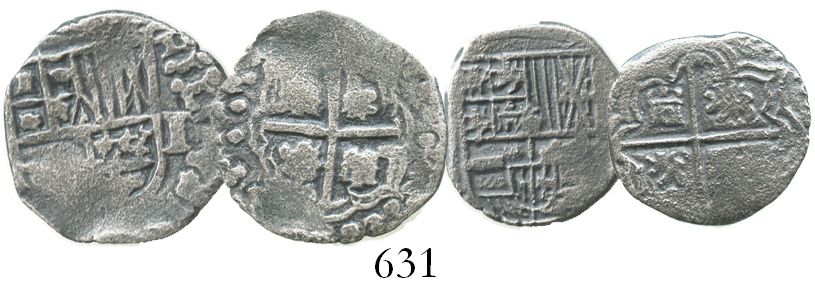 Lot of 2 Potosi, Bolivia, cob 1R, Philip III and IV (shield-type), assayers not visible.