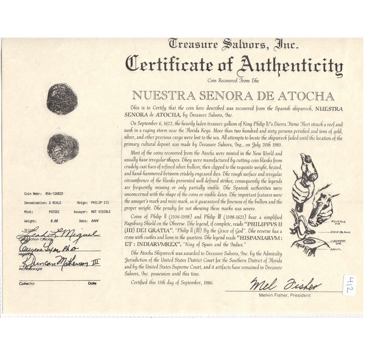 All items are genuine unless noted. Most shipwreck coins and artifacts come with a certificate of authenticity (please check the description for each item). By bidding in this auction you understand and agree to the Terms and Conditions posted here.