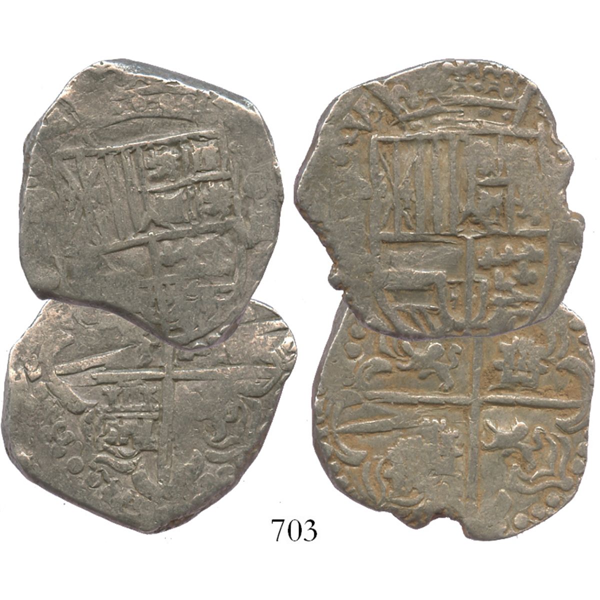 Lot of 2 Potosi, Bolivia, cob 8 reales, Philip IV, assayers not visible (P or T, mid- to late 1620s)