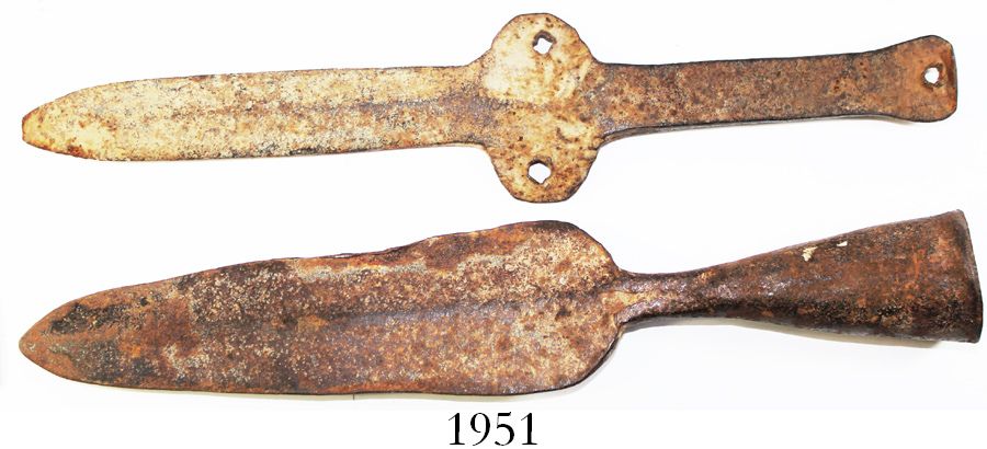 Lot of 2 hand-forged iron pike heads, 1700s, Spanish colonial, found in Arizona.