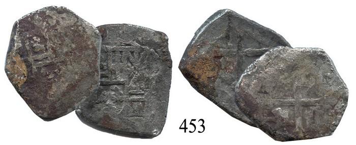 Lot of 2 partially cleaned Mexico City, Mexico, cob 4 reales, Philip V, assayers not visible.