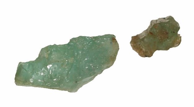 Lot of 2 small, natural emeralds, 2.6 and 1.1 carats, with original Sedwick certificates. About 5/8" and 1/4". Both somewhat translucent but the bigger one much brighter in color, albeit odd in shape, the smaller one with traces of encrustation. With Daniel and Frank Sedwick certificates from 1995. Recovered from: San Geronimo, sunk in 1751 off the Yucatan peninsula of Mexico
