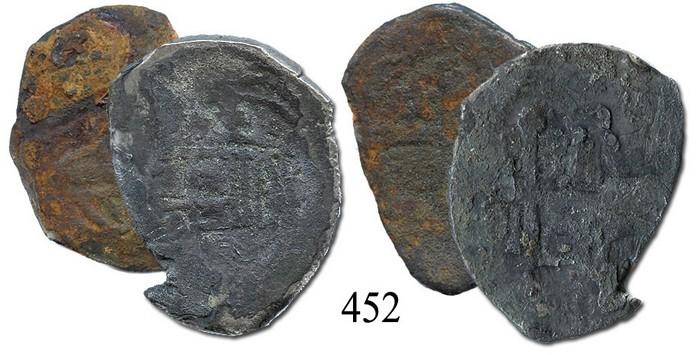 Lot of 2 uncleaned Mexico City, Mexico, cob 4 reales, Philip V, assayers not visible.