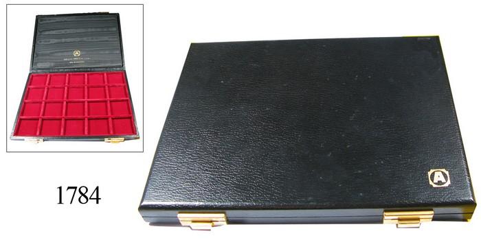 Lot of 3 Abafil "mini-diplomat 1" coin cases, each with 20 spaces measuring 1½" x 1-3/8". Each 9½" x 7" x 1". These hinged, latched, leather cases with velvet interiors are what we recommend for long-term coin storage, as they allow you to keep your coins tagged and organized without the use of any plastics or envelopes, but since new cases are expensive, this is a good opportunity to pick them up more reasonably (nearly new).