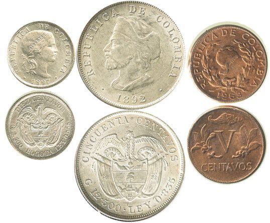 Lot of 3 Colombia miscellaneous minors: 50 centavos 1892 Columbus (small bust); 10c 1897; and copper 5c 1963. 19.1 grams total. Non-toned AU to Mint State, all nice specimens without problems.