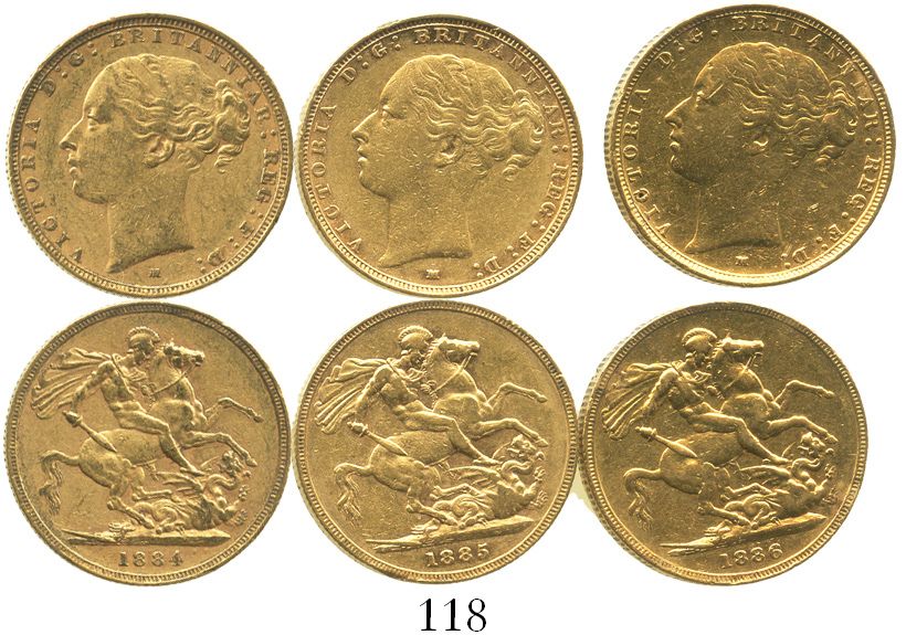 Lot of 3 Melbourne, Australia, sovereigns, Victoria (young head), various dates: 1884, 1885 and 1886