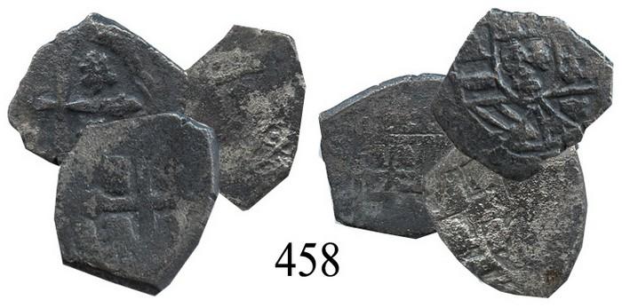 Lot of 3 Mexico City, Mexico, cob 1 reales, Philip V, assayers not visible. KM-30. 2.3 to 3.0 grams each. One with good shield and cross but lightly corroded, the other two mostly flat but solid, good for jewelry or resale. Recovered from: Spanish 1715 Fleet, east coast of Florida. With Real Eight Co. certificate.