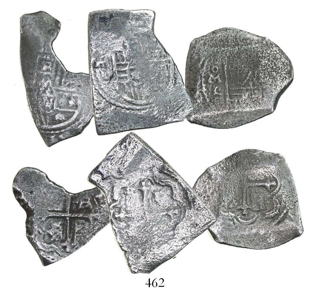 Lot of 3 Mexico City, Mexico, cob 4 reales, Charles II, assayer L (where visible). KM-39. 30.54 grams total. Interesting shapes, two with full oML, lightly corroded and thin, lightly toned. With generic certificates. Recovered from: Joanna, sunk in 1682 off South Africa