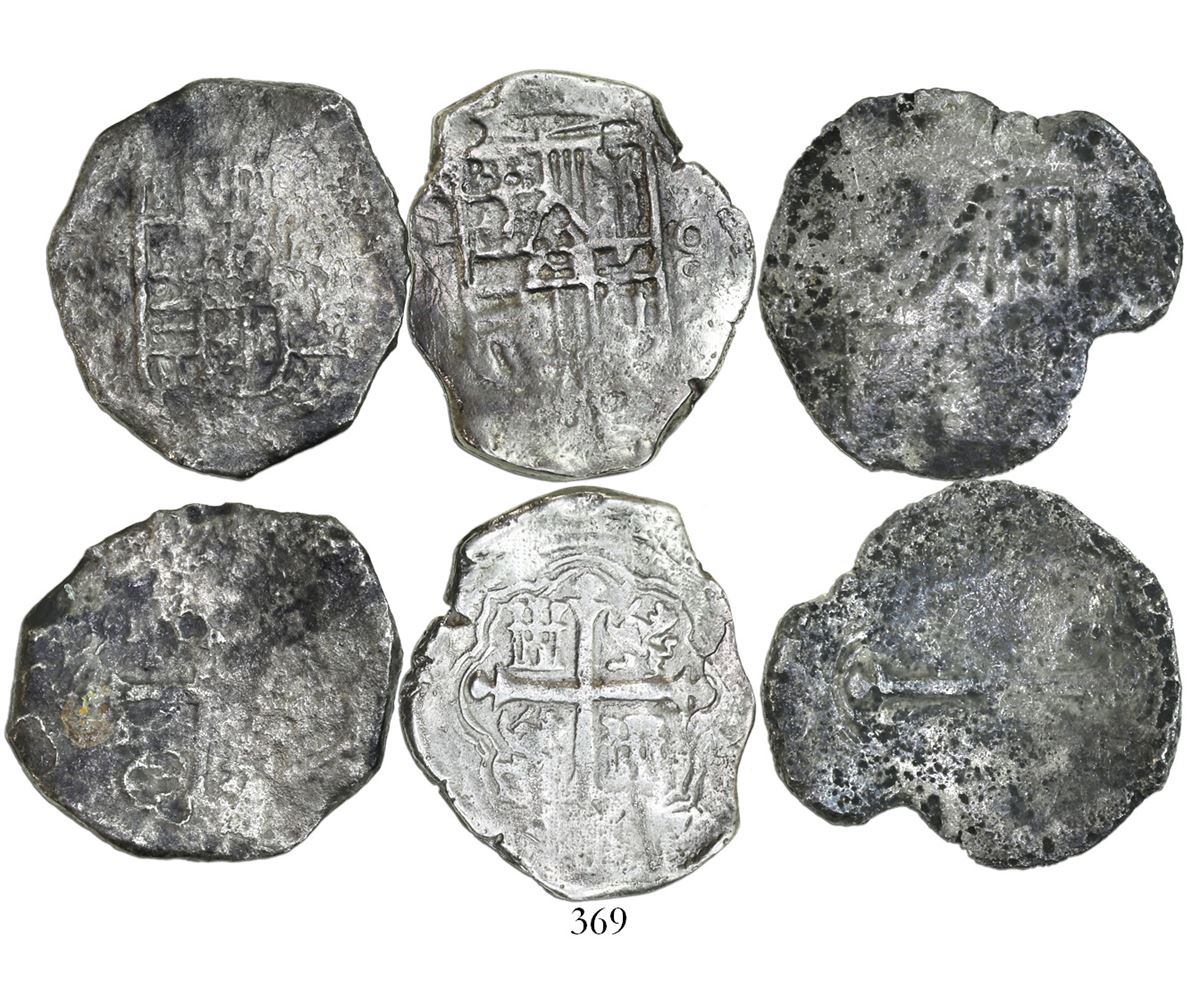 Lot of 3 Mexico City, Mexico, cob 8 reales, Philip IV, assayer D (where visible).