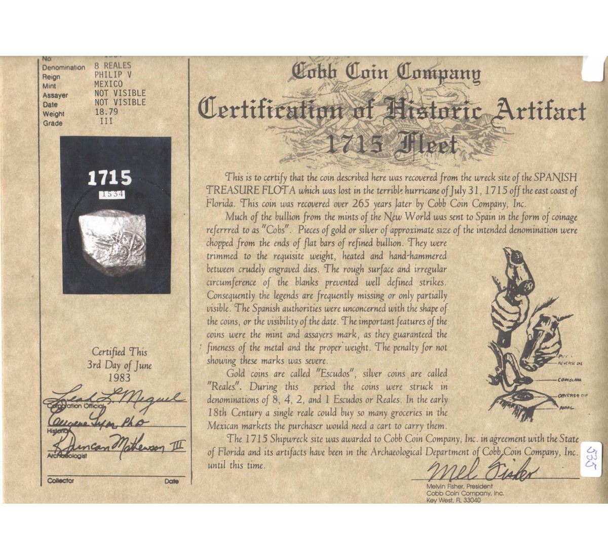 All items are genuine unless noted. Most shipwreck coins and artifacts come with a certificate of authenticity (please check the description for each item). By bidding in this auction you understand and agree to the Terms and Conditions posted here.