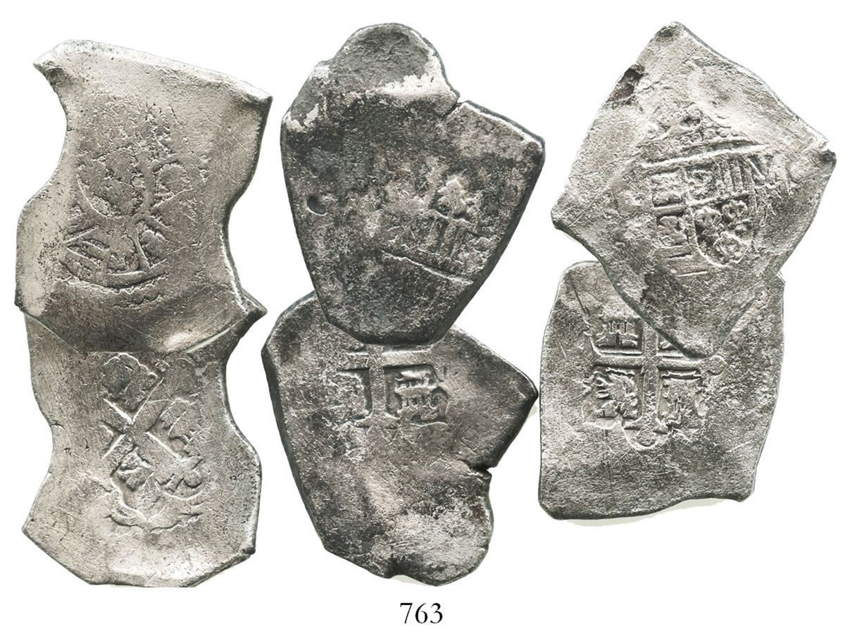 Lot of 3 Mexico City, Mexico, cob 8 reales, Philip V, assayers not visible. 79.5 grams total. Solid coins with light corrosion only, all with at least decent shields and/or crosses. With certificates from the salvagers (generic). Recovered from: Rooswijk, sunk in 1739 southeast of England